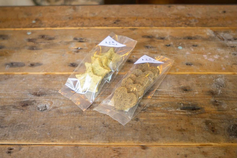 バター、小麦粉、砂糖、卵、珈琲豆と紅茶葉のシンプルな素材でおつくりしているクッキー。